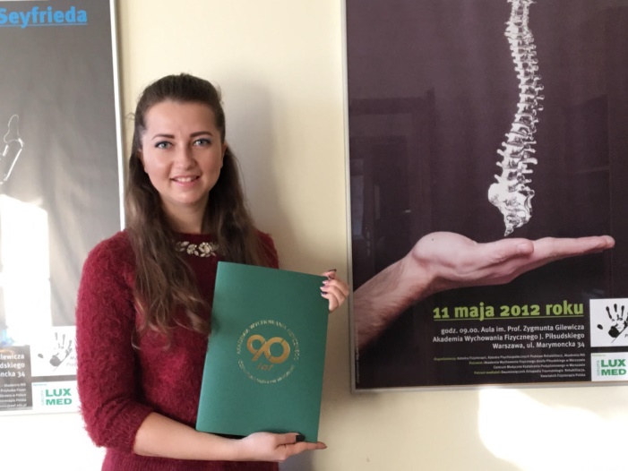 У рамках підписаної угоди про співпрацю між Тернопільським національним медичним університетом імені І.Горбачевського та Академією фізичного виховання імені Й.Пілсудського у Варшаві (AWF) асистент кафедри фізичної терапії, ерготерапії та фізичного виховання Анастасія Бай 18-29 листопада 2019 року пройшла фахове стажування з ерготерапії на базі кафедри ерготерапії факультету реабілітації.