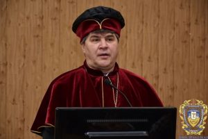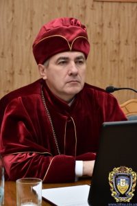 Проректор з науково-педагогічної роботи, професор Аркадій Шульгай надав слово для оголошення наказу про присвоєння звання провізора заступнику декана фармацевтичного факультету, доценту Ігорю Бердею.