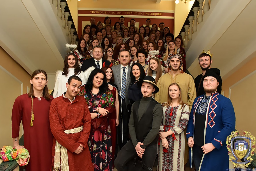 Ось уже п’ять років поспіль всі зимові свята немислимі без вітань хористів Тернопільського національного медичного університету імені І.Горбачевського та учасників театральної студії «Арт-драма». Щоразу вони готують нову програму щедрівок, колядок і вертепного дійства. Цього року також не обійшлося без дзвінкої коляди та віншувань. Хор нашого університету, до складу якого входять викладачі і студенти, порадував чудовим виконанням відомих старовинних і нових щедрівок. До цьогорічного репертуару також увійшло і дві англомовні колядки. Спів хористів гармонійно доповнив акустичний супровід гітари його художнього керівника Тараса Бідованця. Потрібно сказати, що цей колектив став візитівкою ТНМУ.