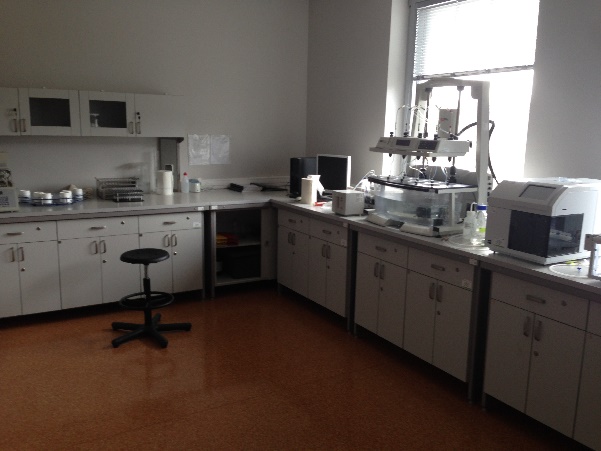 Лабораторія (Pracownia Analizy Elementarnej i Badań Strukturalnych) тісно співпрацює з кафедрою технології ліків, яка оснащена сучасним устаткування, де здійснюється аналіз нових розроблених лікарських засобів. Керує лабораторією д-р Агата Горняк (перша справа).