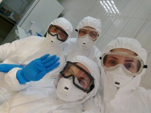 Працівники Тернопільського національного медичного університету імені І.Горбачевського – асистент кафедри мікробіології, вірусології та імунології ТНМУ Уляна Ільницька і аспірант кафедри патологічної фізіології Ольга Костюк сьогодні також на передовій у подоланні епідемії в Україні. Вони досліджують наявність коронавірусної інфекції в організмі пацієнтів за допомогою методу полімеразно-ланцюгової реакції. Обоє є також лікарями-вірусологами вірусологічної лабораторії відділу досліджень біологічних факторів Державної установи «Тернопільський обласний лабораторний центр Держсанепідслужби України».