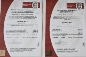 Діяльність ТНМУ спрямована на підвищення якості освіти та науки, кваліфікації персоналу, постійне та своєчасне оновлення освітніх послуг відповідно до сучасних тенденцій. Сертифікація за стандартом ISO 9001: 2015 забезпечує пріоритетну позицію нашого університету на ринку освітніх послуг.