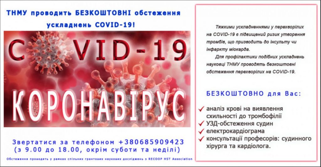 ТНМУ проводить безкоштовні обстеження ускладнень COVID 19!