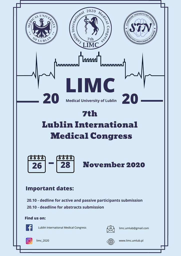 On behalf of Student’s Scientific Society of the Medical University of Lublin, we are delighted to invite all students and young doctors to take part in the *7th edition of “Lublin International edical Congress for Students and Young Doctors”.