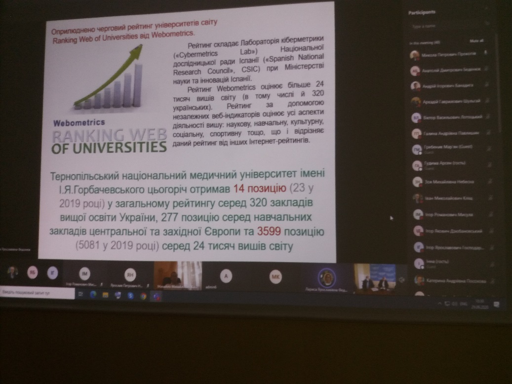 29 вересня 2020 року відбулося планове засідання вченої ради ТНМУ в дистанційному режимі.