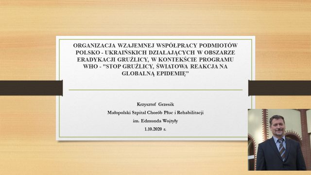 Доповідь головного лікаря Małopolski Szpital Chorób Płuc i Rehabilitacjiim EdmundaWojtyły (Kraków, Polska) Кшиштофа Гжесіка (Krzysztof Grzesik) «Organizacja wzajemnej współpracy podmiotów Polsko – Ukraińskich działających wobszarze eradykacji gruźlicy, w kontekście programuwho – «stopgruźlicy, światowa reakcja na globalną epidemię» була присвячена спільному Польсько-Українському проекту з боротьби з туберкульозом, який був проведений польськими та українськими науковцями, практичними лікарями та іншими спеціалістами у 2019 році.