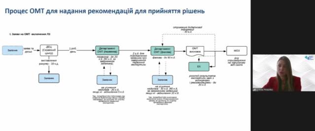 У своїй доповіді Ореста Піняжко акцентувала свою увагу на досягненнях Департаменту ОМТ за період 2019-2020, нагадавши присутнім про перші кроки і етапи інституціоналізації ОМТ в Україні та окресливши Дорожню карту з ОМТ в Україні 2019-2022. Наступним головним питанням, на якому директорка департаменту з ОМТ детальніше зупинилася, було аналіз стану нормативно-законодавчої бази з ОМТ в Україні починаючи з 2016 року, який водночас ознаменувався створенням Експертного комітету з відбору та використання основних лікарських засобів. У січні 2019 року був створений Департамент з оцінки медичних технологій при ДП «Державний експертний центр МОЗ України». Було наголошено, що за результатами роботи спеціально створеної робочої групи з ОМТ, у серпні 2020 року було опубліковано єдиний нормативно-правовий документ, який вперше регламентує порядок і описує процедуру проведення Державної ОМТ в Україні – Проєкт постанови Кабінету Міністрів України «Про затвердження Порядку проведення державної оцінки медичних технологій та внесення змін до постанови Кабінету Міністрів України від 25 березня 2009 р. № 333», який знаходиться на етапі громадського обговорення.