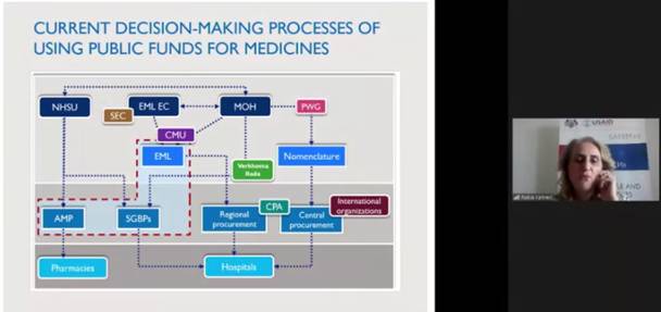 Рабія Кахведжі представила схему існуючого процесу прийняття рішень щодо використання бюджетних коштів на закупівлю лікарських засобів.
