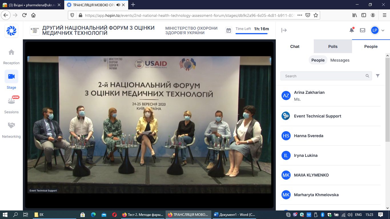 24-25 вересня 2020 року з ініціативи Міністерства охорони здоров’я України та за підтримки проєкту SAFEMed агентства США з міжнародного розвитку (USAID) у Києві відбувся ІІ Національний форум з оцінки медичних технологій (англ. Health Technology Assessment) на віртуальній платформі Hopin.