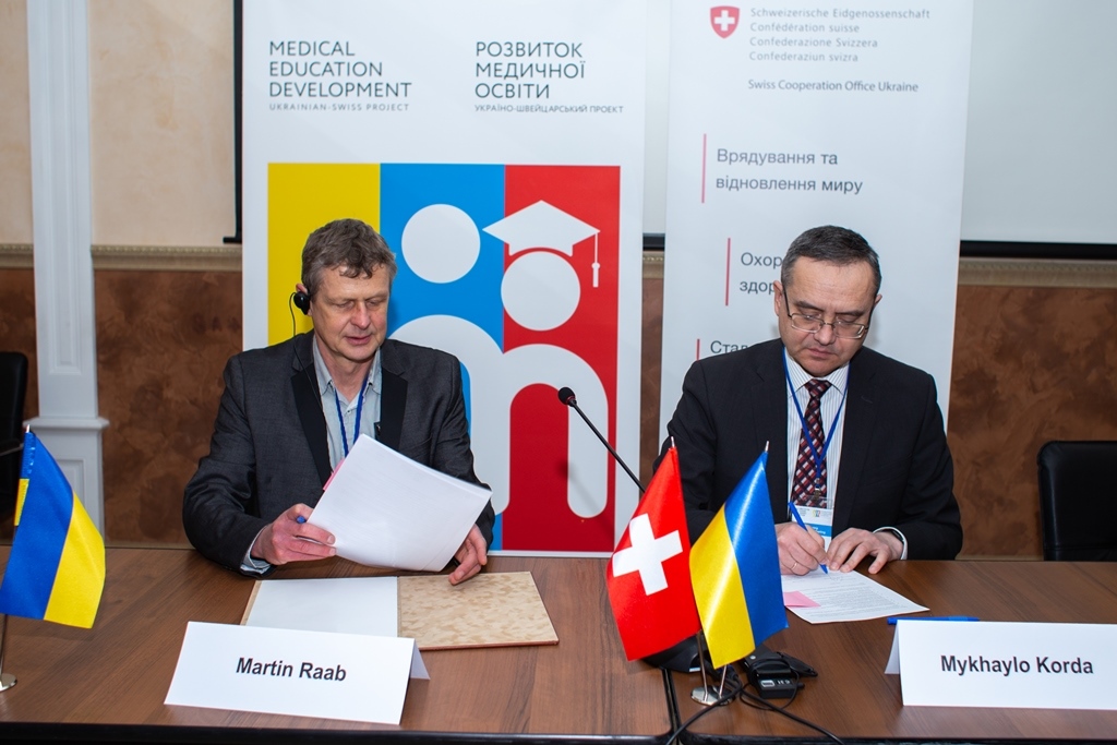 Угоду про співробітництво в рамках Українсько-швейцарського проекту «Розвиток медичної освіти» наш університет підписав 27 березня 2019 року у Києві під час засідання наглядової ради цього проєкту і першої спільної зустрічі його учасників проекту. ТНМУ отримав право на реалізацію проєктних завдань у двох напрямках – загальна практика та сімейна медицина і навчання медсестер.