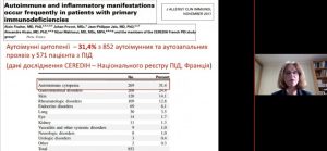 Алла Петрівна зосередила увагу слухачів на аутоімунних цитопеніях, як найбільш поширених у пацієнтів з первинними імунодефіцитами, вторинних цитопеніях як наслідок лімфопроліферації, гемофагоцитозу. Науковець ознайомила присутніх з причинами захворювання, втратою клітин та зниженням продукції клітин, тактикою лікування.