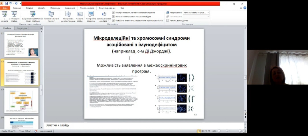 Завідувач лабораторії генетичних досліджень ДУ «Інститут спадкової патології Національної академії медичних наук України», кандидат медичних наук Галина Макух представила доповідь «Організація неонатального скринінгу та можливості діагностики Т- і В-лімфопеній у новонароджених».