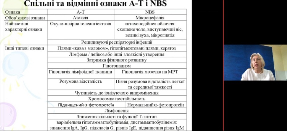 Марія Ігорівна вказала на той факт, що клінічні прояви А-Т і синдрому Ніймегена залежать від віку дитини, наявної кількості мутацій, від вираженості дії екзогенних пошкоджуючих факторів, тому завжди важко спрогнозувати перебіг захворювання у конкретного пацієнта.