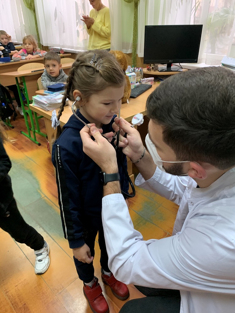 Урок був проведений у формі гри. Дітки мали змогу спробувати побути маленькими лікарями: почути своє серце за допомогою фонендоскопа, зробити вакцинацію ведмедику – саме цей інтерактив їм найбільше сподобався. Також студенти ТНМУ розповіли про лікарські препарати та аптеки, адже дуже важливо пояснити різницю між пігулками та цукерками, мікстурами та солодкою водою, аптекою та звичайним магазином. Майбутні медики зазначили, що спершу важко було встановити контакт з дітками, адже вони були трохи налякані, але потім з задоволенням відповідали на питання та гралися.