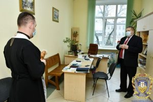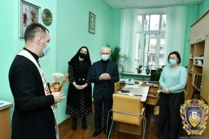 Отець Ігор Драпак, який є священником УГКЦ і капеланом Тернопільського національного медичного університету імені І.Горбачевського, від імені духовенства Української греко-католицької церкви привітав колектив нашого вишу з різдвяними святами і здійснив обряд освячення Йорданською водою приміщень освітнього закладу.