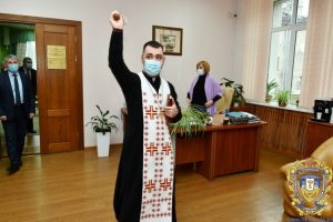 Отець Ігор Драпак, який є священником УГКЦ і капеланом Тернопільського національного медичного університету імені І.Горбачевського, від імені духовенства Української греко-католицької церкви привітав колектив нашого вишу з різдвяними святами і здійснив обряд освячення Йорданською водою приміщень освітнього закладу.