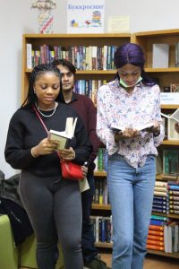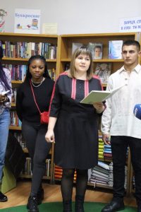 Студентки 373 кураторської групи (куратор – доц. Ратинська О.М.) з Нігерії – Емангне Енамхе Марі-Карен і Овіезе Фейвор Маякі – зачитали вірш «Сontra spem spero» англійською мовою.
