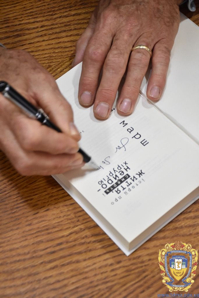 Наприкінці лекції ректор ТНМУ, професор Михайло Корда запросив Генрі Марша відвідати наш університет знову і за сприятливих умов вживу поспілкуватися зі студентами.