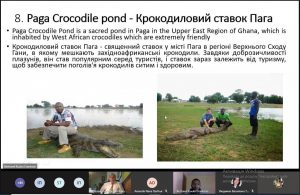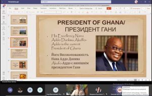 Інформацію про історію, культуру, пам’ятки архітектури, видатних людей Гани англомовні студенти доповідали англійською та українською мовами.