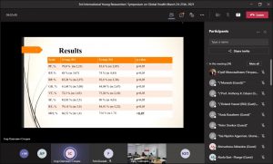Цікавими були виступи молодих науковців з Канади, Німеччини, Гани, Ірану, Уганди, США, Ємену, Росії. Презентації усіх доповідачів викликали зацікавленість слухачів та супроводжувалися дискусіями. Міжнародний науковий захід закінчився обговоренням доповідей та наданням рекомендацій молодим науковцям на панельній дискусії, в якій взяли участь професори та керівники організацій громадського здоров’я та глобального здоров’я з країн-учасників симпозіуму, серед яких завідувачка кафедри громадського здоров’я та управління охороною здоров’я, д-р мед. наук, професор Ганна Сатурська відмітила наукову новизну та різноманітність тем глобального здоров’я, які висвітлювалися молодими науковцями з великим ентузіазмом, креативним підходом та новими ідеями покращення здоров’я населяння на усіх континентах.