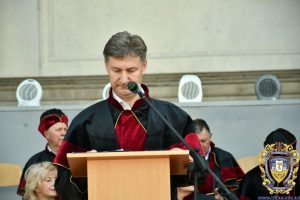 «Від імені вченої ради і професорсько-викладацького складу університету вітаю вас з цією знаменною подією у вашому житті. Сьогодні ви отримуєте квиток у самостійне майбутнє. Перенесіться подумки на хвилину на 5-6 років назад. Згадайте заповнену щасливими посмішками нових студентів нашого університету урочисту залу Палацу культури «Березіль». Вони щойно пройшли посвяту і матрикуляцію. Тоді вам здавалося, що навчання буде довгим і тривалим. Погодьтеся, що цей час промайнув дуже швидко. Тепер згадайте найкращі моменти вашого студентського життя, в якому були не тільки лекції, іспити, а й багато яскравих моментів – нові зустрічі, знайомства, відпочинок, подорожі. Студентство – це найкраща пора в житті кожної людини, це особливий стан душі, найкращий час для самореалізації і самовизначення, реалізації своїх мрій. Переконаний, що ви ще не один раз будете згадувати з ностальгією і приємністю час, проведений в Тернопільському медичному університеті. Багато моментів з цього студентського життя ви втрачаєте назавжди, але з іншого боку цей день є радісним, бо він дає світло надії і радість зустрічі з майбутнім. Сьогодні – це той момент, коли ви вступаєте на свою широку і незалежну життєву дорогу.