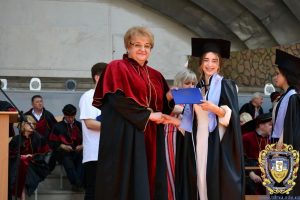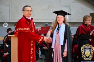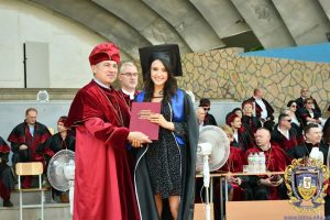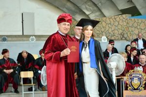 Увесь цей час ви навчалися поряд з іноземними студентами. Зараз ви бачите сімнадцять прапорів інших країн. Це означає, що сьогодні дипломи отримають студенти, які приїхали на навчання з сімнадцяти країн. Вже за декілька днів вони поїдуть додому. Але я сподіваюся, що вони будуть пам’ятати Україну і наш університет, а також стануть неофіційними дипломатами нашої батьківщини