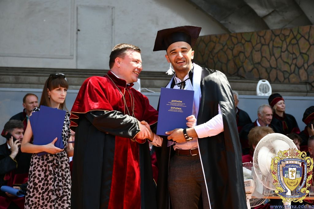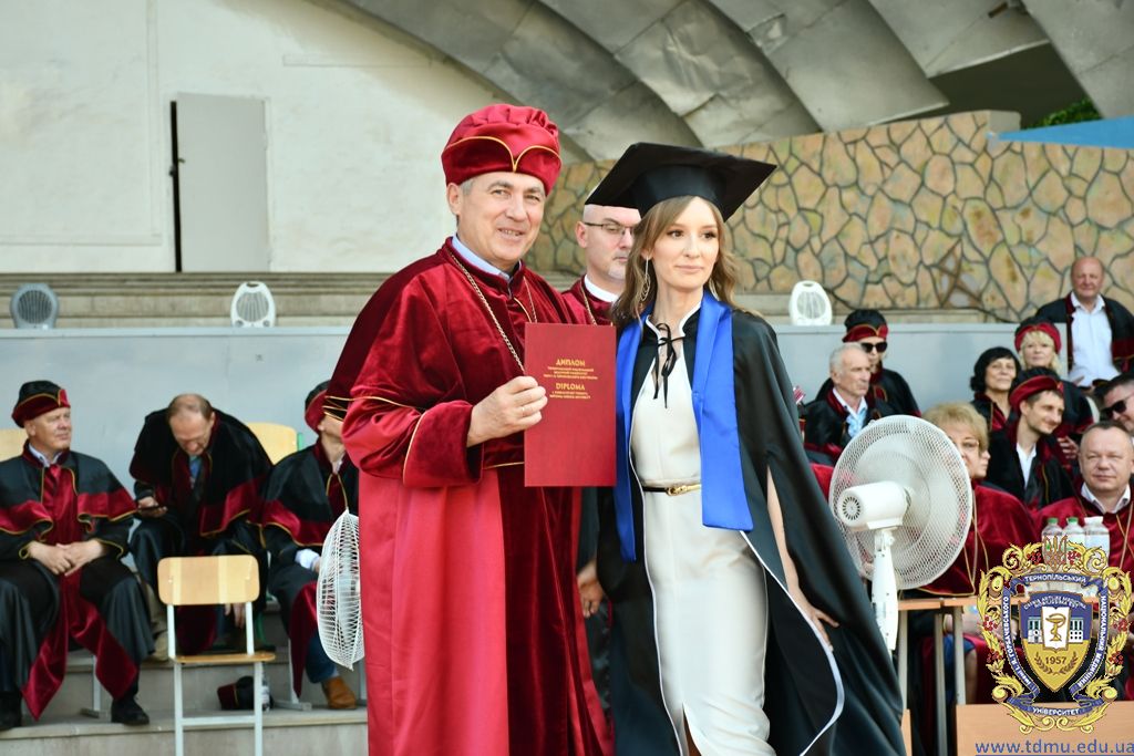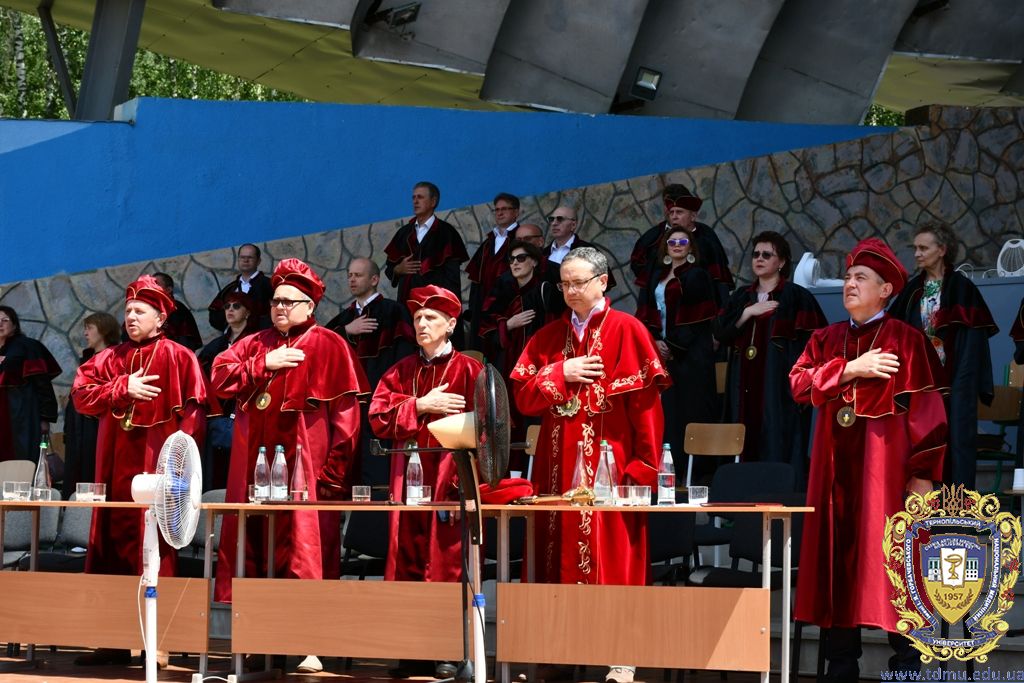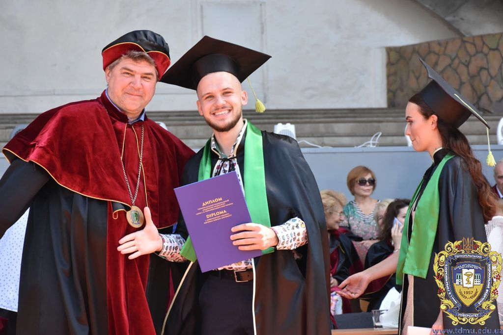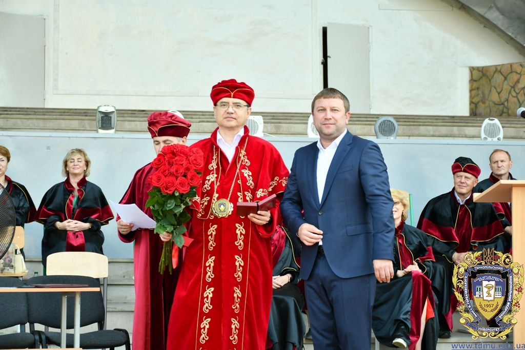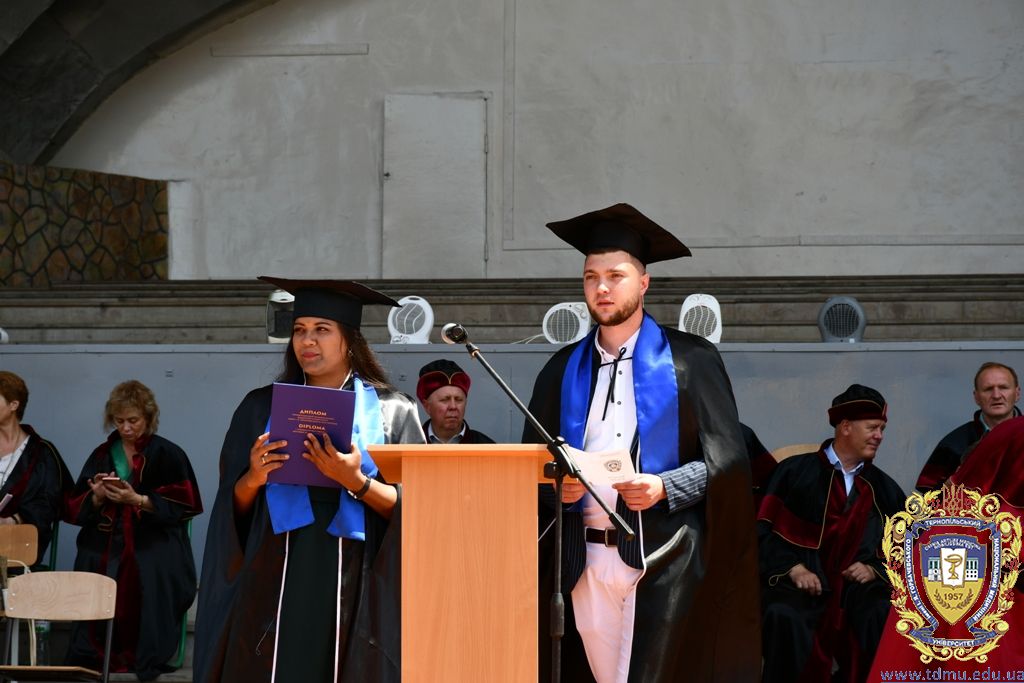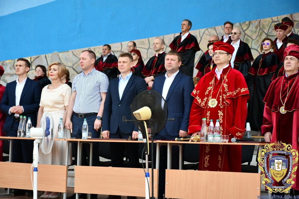 Привітав випускників голова Тернопільської облдержадміністрації Володимир Труш. У своїй промові він зазначив, що дипломи отримали майбутні професіонали. Він додав, що випускники Тернопільського медичного університету є одними з найкращих професіоналів-медиків в країні. Неодноразово вони отримували нагороди і відзнаки від президента країни, Кабінету Міністрів. Володимир Труш передав вітання від міністра охорони здоров’я, який планував бути присутнім на урочистій церемонії, але через брак часу у зв’язку з пандемією коронавірусної інфекції і щільним графіком не зміг цього зробити.