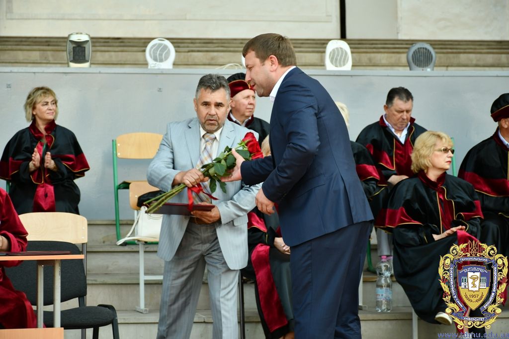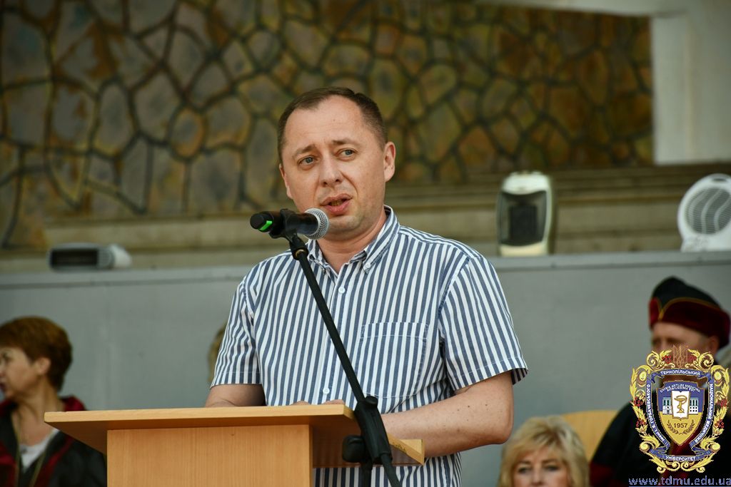 Керівник відділу охорони здоров’я та медичного забезпечення ТМР Василь Даньчак привітав вчену раду та випускників ТНМУ з важливим святом. Він висловив впевненість у тому, що попереду у молодих людей нелегкий, але цікавий професійний шлях.