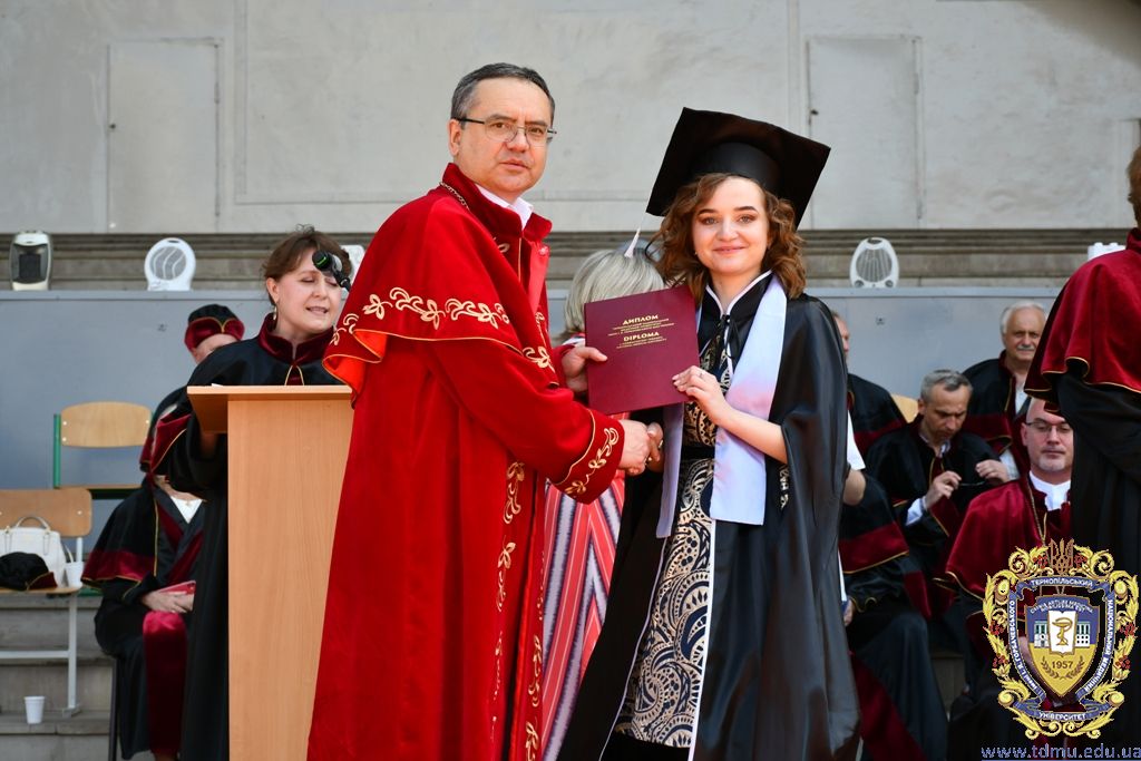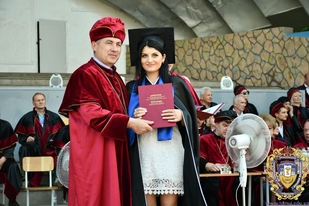 Сьогодні традиційно випускаємо лікарів, провізорів, медсестер, стоматологів, фізичних терапевтів. Дорогі друзі, ви повинні пам’ятати, що обрали найбільш шановану і благородну професію. Ми впевнені, що вона була для вас омріяною. Закликаємо вас ніколи не зраджувати своїй професії, розвиватися в ній, тоді ви будете жити в гармонії з собою. Є відома промова Стіва Джобса перед випускниками Стенфордського університету. У ній є важлива думка: «Пам’ятайте, що ваш час обмежений, тому не дозволяйте собі таку розкіш, як жити чужим життям, не потрапляйте в пастку догми, яка говорить, що жити треба, керуючись чужими думками, не дозволяйте шуму чужих думок перебивати ваш внутрішній голос. І найголовніше – майте мужність прислухатися до свого внутрішнього голосу, до свого серця та інтуїції». Якщо будете любити свою професію, чесно виконувати свої професійні обов’язки, якщо ваша професія даватиме вам гідне матеріальне забезпечення для вас і вашої родини, то ви житимете в гармонії з собою і світом загалом. Для того, щоб бути затребуваним у своєму фаху, вам треба буде постійно вдосконалюватися. Медицина – це та галузь, яка розвивається постійно, стрімко розвивається діагностика, з’являються нові механізми патогенезу тієї чи іншої хвороби. Тому вам потрібно постійно розвиватися, читати останні медичні новини і освоювати нові технології, стимулювати себе рости професійно. Вам випала доля завершувати медичну реформу, розпочату в Україні і від вас буде залежати майбутнє системи охорони України.