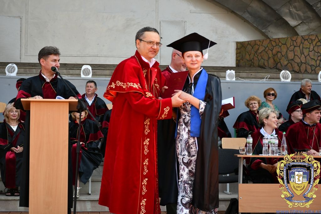 Увесь цей час ви навчалися поряд з іноземними студентами. Зараз ви бачите сімнадцять прапорів інших країн. Це означає, що сьогодні дипломи отримають студенти, які приїхали на навчання з сімнадцяти країн. Вже за декілька днів вони поїдуть додому. Але я сподіваюся, що вони будуть пам’ятати Україну і наш університет, а також стануть неофіційними дипломатами нашої батьківщини