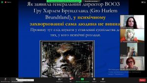 Кандидат медичних наук, доцент Олена Євгенівна Смашна виступила з презентацією на тему «Види та особливості психічних розладів та їх діагностика», наголосивши на необхідності якісної дифдіагностики розладів працівниками, що надають допомогу особам з психічними порушеннями.
