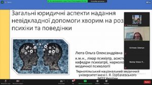 Кандидат медичних наук, асистент кафедри Ольга Олександрівна Люта розповіла учасникам про правові аспекти у психіатрії та особливості надання домедичної допомоги. Ольга Олександрівна представила учасникам методи надання допомоги людям з різними психічними порушеннями, відповідно до актуальних Міжнародних клінічних протоколів.