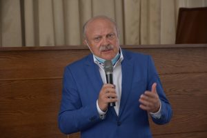 По першому питанню порядку денного «Підсумки діяльності університету за 2020-2021 н.р. і чергові завдання на новий навчальний рік» з доповіддю виступив ректор університету, заслужений діяч науки і техніки України, проф. М.М. Корда.