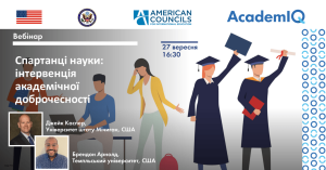 Від імені Американських Рад з міжнародної освіти, що впроваджують проєкт “Ініціатива академічної доброчесності та якості освіти”, запрошуємо вас відвідати онлайн-вебінар “Спартанці науки: інтервенція академічної доброчесності”, який відбудеться 27 вересня о 16:30.