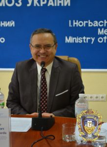 Відкриття симпозіуму розпочалося з вступної промови ректора Тернопільського національного медичного університету імені І.Горбачевського МОЗ України, член-кореспондента НАМН України, заслуженого діяча науки і техніки України, д-ра мед. наук, професора М.М.Корди, у якій він наголосив на необхідності запровадження в Україні потужної профілактичної системи громадського здоров’я, обгрунтувавши дану позицію низкою негараздів, які спостерігаються в Україні, зокрема, таких як зростання поширеності ВІЛ-інфекції, проблем з туберкульозом, наявності великої кількості сміттєзвалищ, які займають велетенські площі, негативні наслідки Чорнобильської катастрофи, що впливають на здоров’я населення країни і потребують вирішення. Ректор ТНМУ звернув увагу учасників симпозіуму на те, що здоров’я суспільства залежить від різних факторів: кліматичних, екологічних, економічних, способу життя, але в той же час все більший вплив на якість і тривалість життя має система заходів та процедур, консолідованих зусиль суспільства, організацій, направлених на зміцнення життя, профілактику захворювань. У розвинутих країнах «Громадське здоров’я», як науково-практична дисципліна, існує вже давно, кращі університети світу готують відповідних спеціалістів, які й працюють над розробкою та впровадженням у життя основних принципів профілактики захворювань, зміцнення здоров’я населення. Михайло Михайлович відмітив, що ТНМУ був одним з перших ЗВО в Україні, які створили магістерську програму з громадського здоров’я, в тому числі, завдячуючи співпраці з німецькими партнерами з Акконського університету. Ректор ТНМУ також відзначив високу активність та успіхи університету у міжнародних проектах з громадського та глобального здоров’я, зокрема здобуття міжнародного гранту Еразмус+ для реалізації BACE проекту з Глобального здоров’я «Building Academic Capacity in Global Health in the Eastern Europe – Central Asia Region (BACE)» – «Нарощування академічних можливостей у галузі глобального здоров’я в регіоні Східна Європа – Центральна Азія», який спрямований на створення або модернізацію освітніх програм у галузі охорони здоров’я і навколишнього середовища, модернізацію врядування закладів вищої освіти та сприятиме зміцненню зв’язків між ЗВО України та інших країн Євразійського континенту і світу. Завдяки цьому проекту ТНМУ став співзасновником міжнародного Євразійського альянсу з Глобального здоров’я, важливими завданнями якого є нарощування потужностей академічного та наукового потенціалу учасників цього Альянсу. Михайло Михайлович побажав плідної праці усім учасникам Симпозіуму: «Я вважаю, що в Тернопільському національному медичному університеті імені І. Горбачевського МОЗ України ми докладаємо необхідні зусилля для того, щоб удосконалити усталену систему громадського здоров’я в Україні, адже сьогодні вона нам як ніколи потрібна».