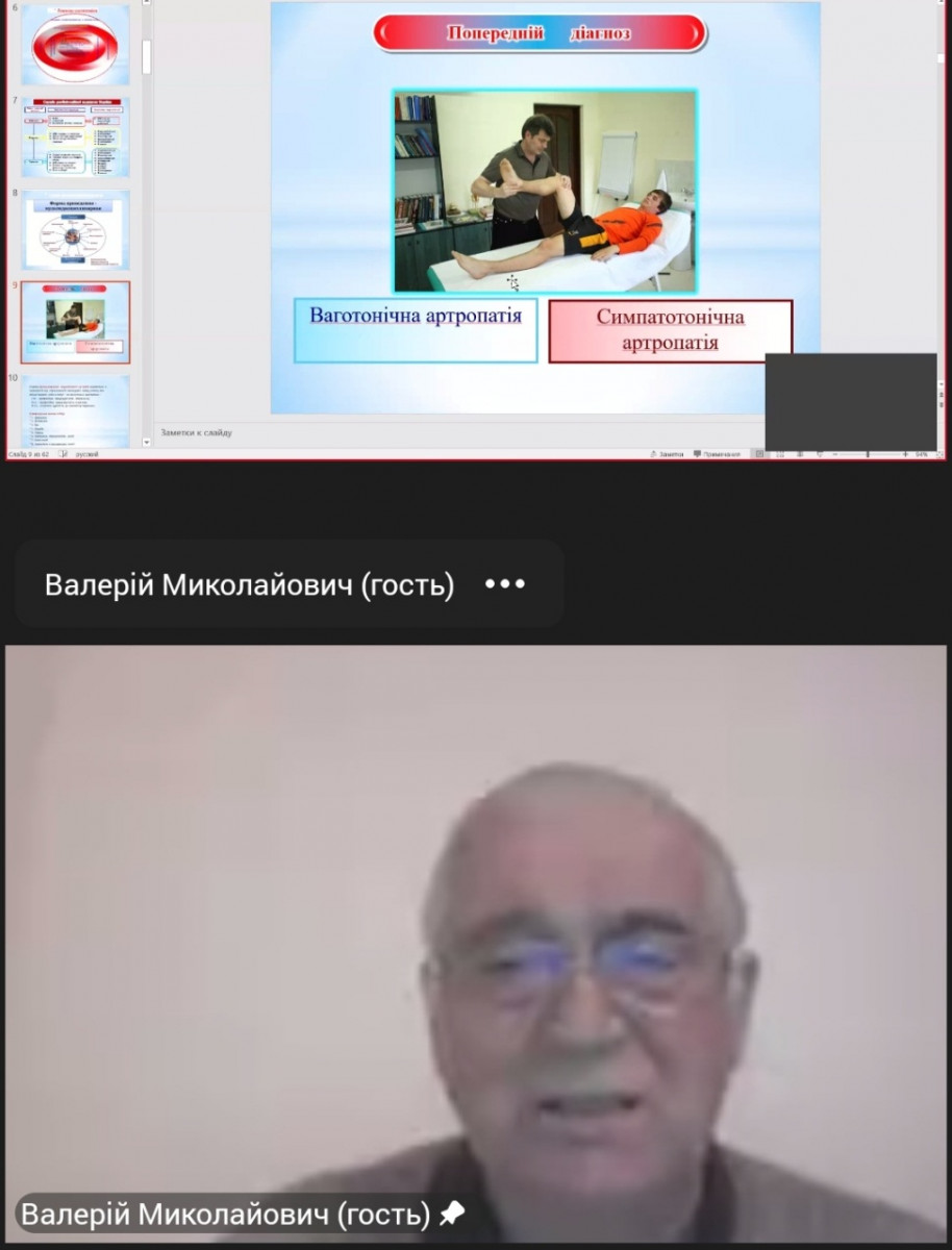 Валерій Сокрут, професор, доктор медичних наук, завідувач кафедри реабілітаційної та спортивної медицини Донецького національного медичного університету представив доповідь «Реабілітація пацієнтів з суглобовим синдромом на первинному і вторинному рівнях надання медичної допомоги».