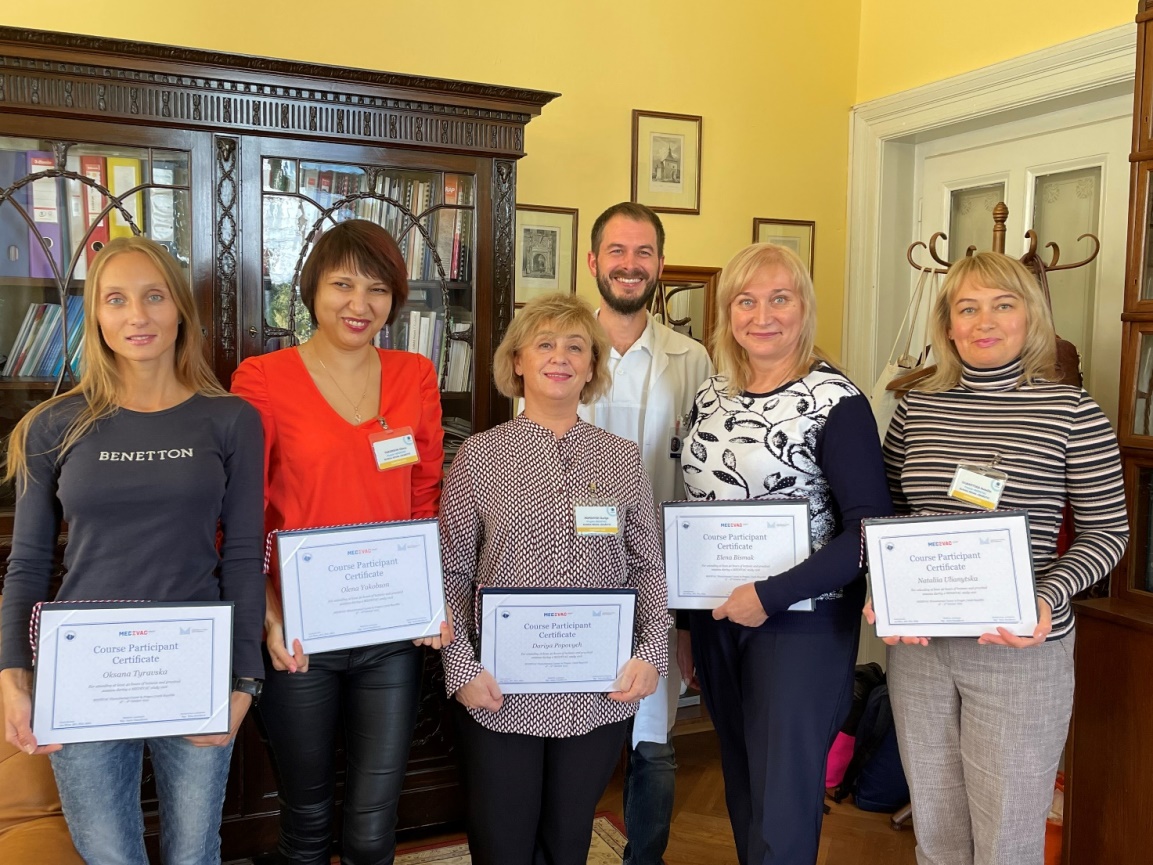Після завершення фахового стажування за програмою MEDEVAC представниками Міністерства внутрішніх справ Чехії при участі команди спеціалістів загальної факультетської лікарні у Карловому університеті спеціальностей фізична терапія та ерготерапія було вручено сертифікати учасникам програми – викладачам ВНЗ України в т.ч. Дарії Попович.