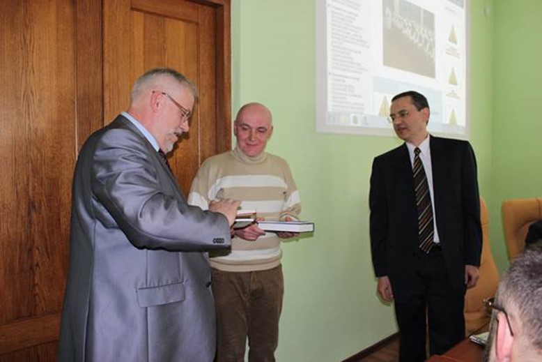 Розпочалося засідання із урочистого вручення доктором педагогічних наук, професором, почесним професором нашого університету Анатолієм Вихрущем директору університетської бібліотеки Ігорю Івановичу Гаврищаку відзнаки фонду імені Володимира Вихруща за творчий літературний доробок.