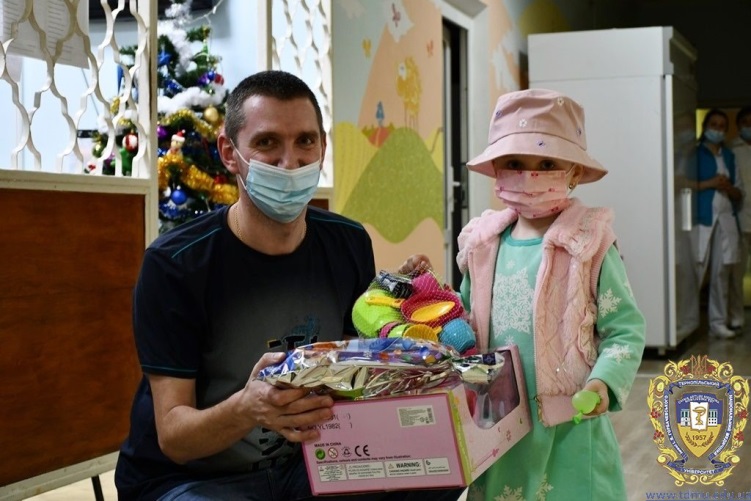Наш університет продовжує розпочаті власні благодійні традиції. Цього року напередодні Святого Миколая, 18 грудня, уже нова зміна студентського волонтерського корпусу ТНМУ відвідала дітей гематологічного відділення Тернопільської міської дитячої комунальної лікарні в рамках проекту «Скринька хоробрості». Кожна дитина мала змогу отримати омріяний подарунок, про який розповіла у своєму листі до Святого Миколая.
