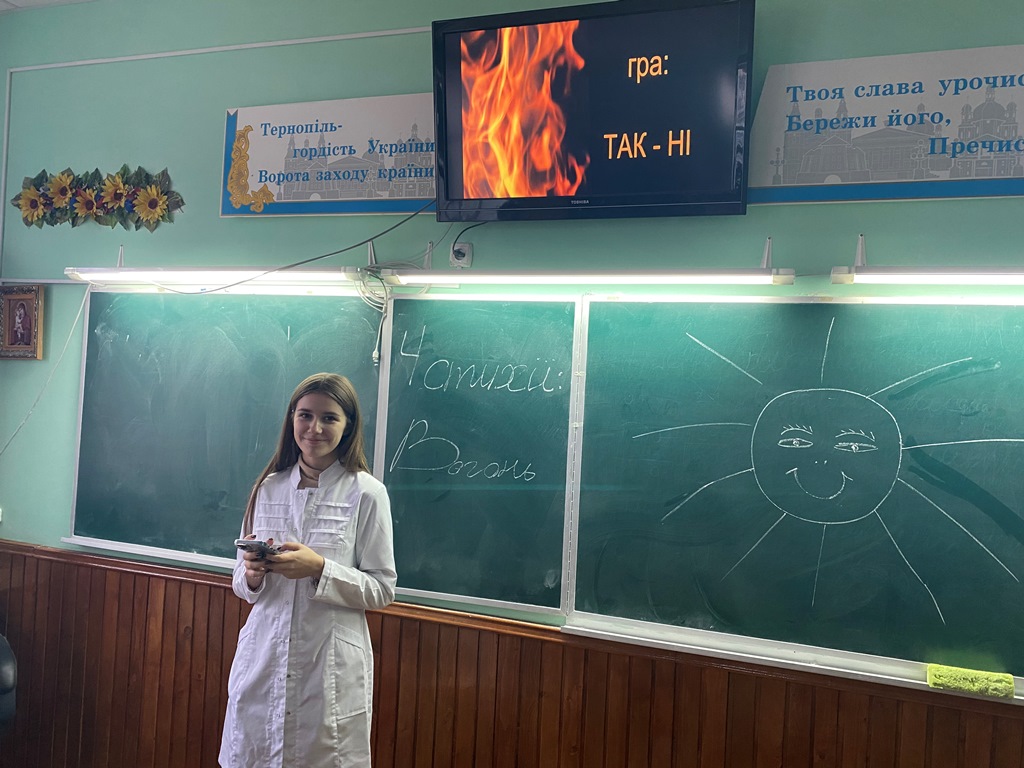 Серед учнів 5-го класу загальноосвітньої школи №3 було організовано вікторину «Сонечко». Діти з великим задоволенням розгадували ребуси та кросворди на тему стихії «Вогню». Цікавинкою освітнього заходу було проведення в спортзалі школи «Королівського вогняного масажу», який продемонструвала доцентка кафедри фізичної терапії, ерготерапії та фізичного виховання ТНМУ Наталія Давибіда.
