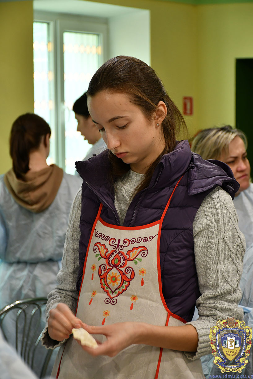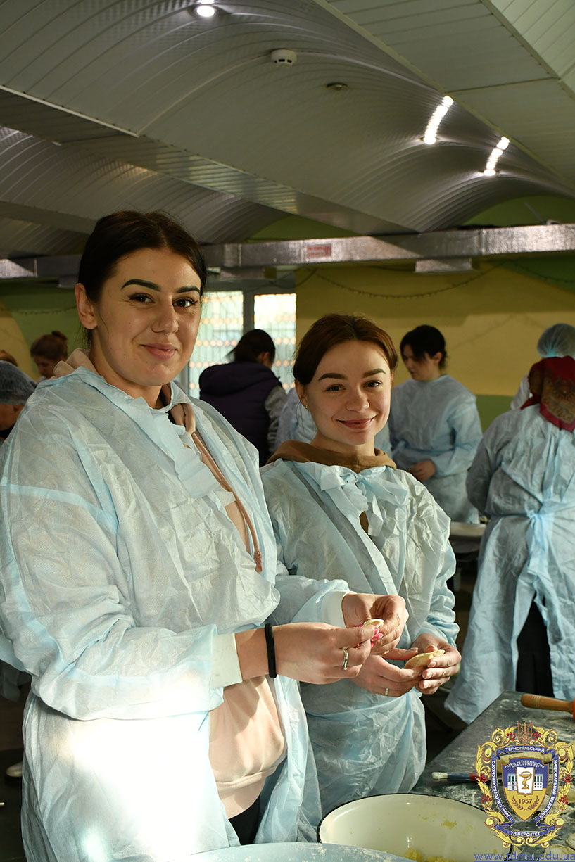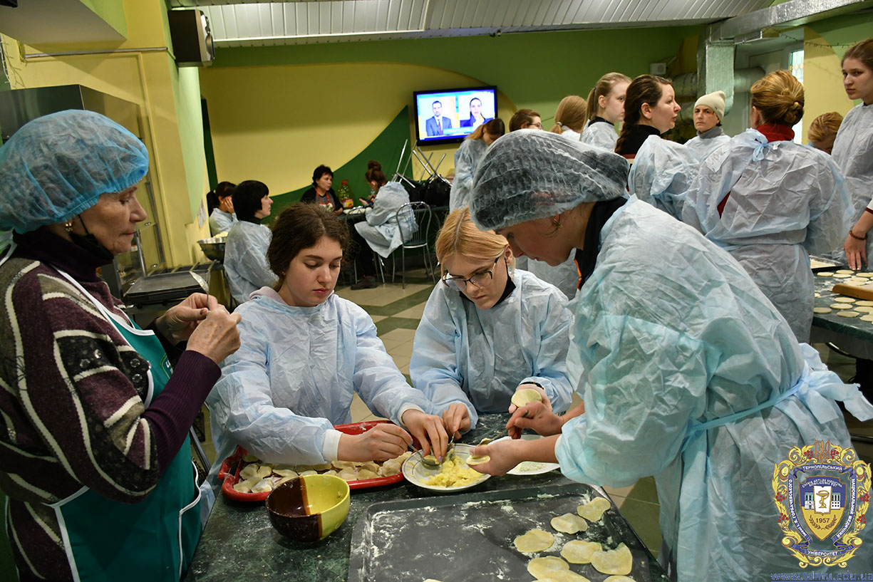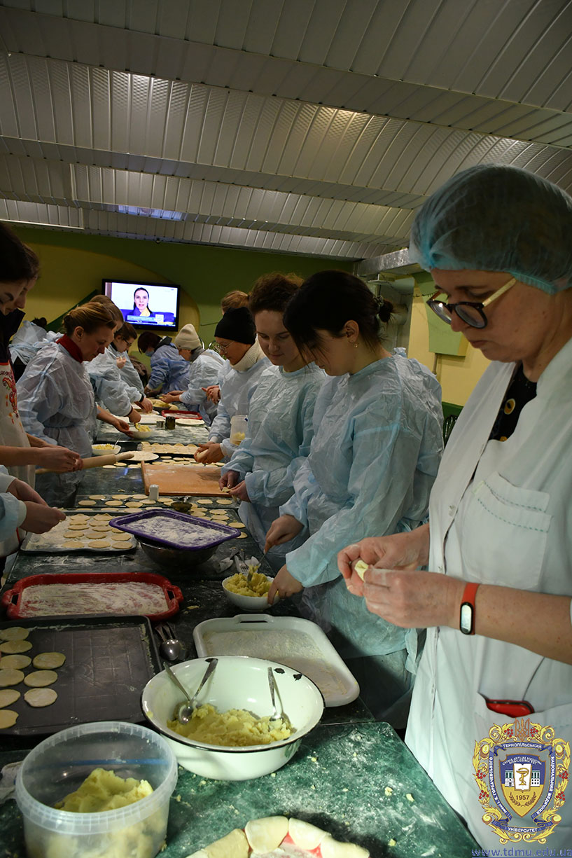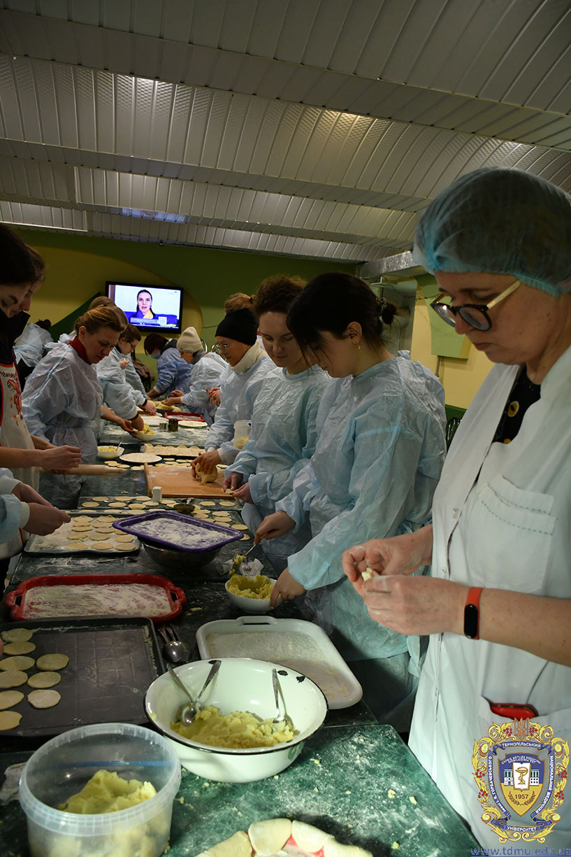 Тернополян запрошують долучитися до готування їжі для захисників України. 28 лютого 2022 року в кафе «Ескулаб» Тернопільського національного медичного університету імені І.Горбачевського розпочали ліплення вареників для потреб фронту. Упродовж двох днів спільними зусиллями студентів і викладачів ТНМУ було наліплено 200 підносів українських традиційних смаколиків.