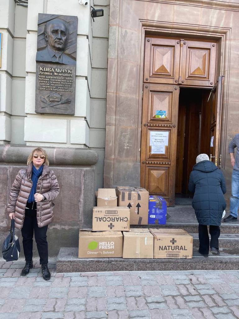 «Моя давня подруга Галина Косинська свого часу заснувала український ресторан у Лондоні. Вона є палкою патріоткою України. Сьогодні її заклад став своєрідним гуманітарним штабом у Лондоні. Сюди все необхідне приносять українці, які проживають в цьому місті, а також небайдужі британці. Галина формує гуманітарні вантажі і відправляє їх у різні міста України. Водночас вона постійно підтримує тісний контакт з українським посольством, щоб допомога потрапила в Україну якомога швидше», – зазначила професор ТНМУ Дарія Попович.
