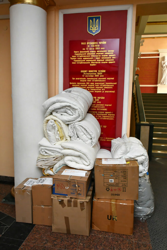 Волонтерський центр ТНМУ передав для потреб онкохворих пацієнтів Чернігівщини спальні мішки, каремати, ковдри, подушки, комплекти постільної білизни орієнтовно вагою 200 кг. Також було сформовано набір ліків вагою 37 кг. Чернігівський онкоцентр отримав отримав 120 кг продуктів харчування і 25 кг засобів гігієни для лежачих хворих.