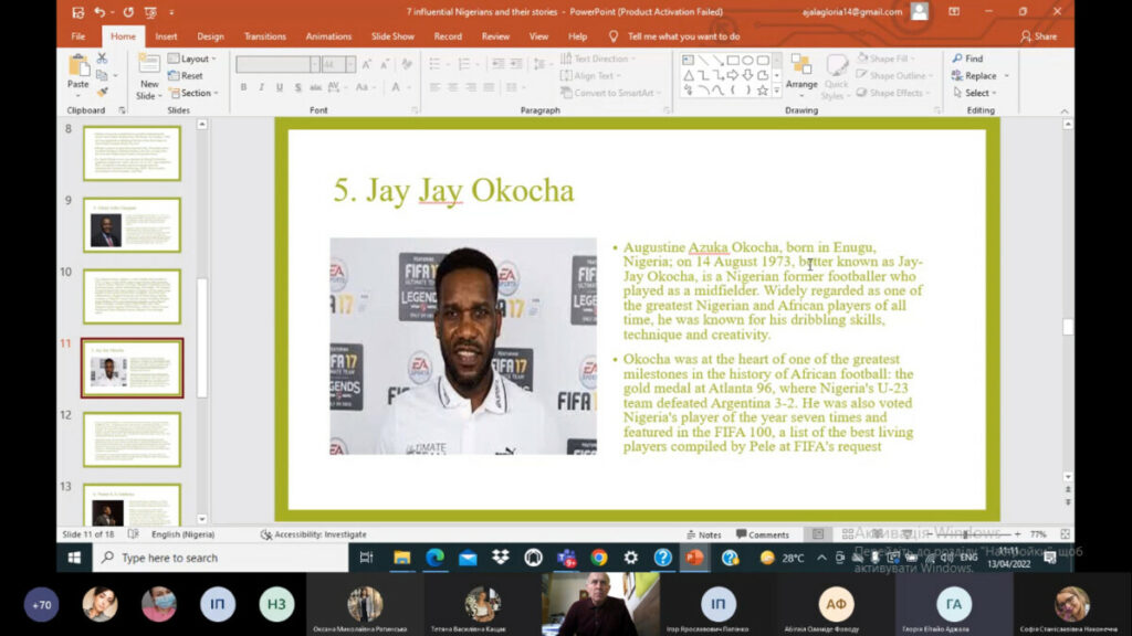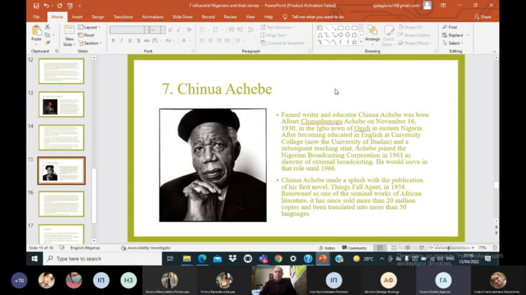 Інформацію про історію, культуру, пам’ятки архітектури, видатних людей Нігерії англомовні студенти доповідали англійською та державною мовами.