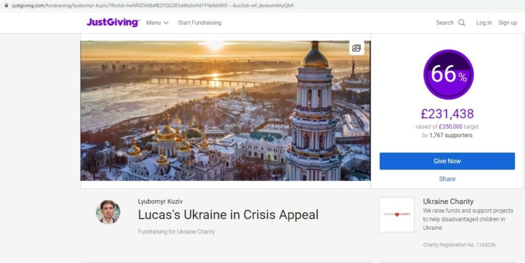 На сторінці (https://www.justgiving.com/fundraising/lyubomyr-kuziv/?fbclid=IwAR0ZVkBdfB2YQG383aWa3cHd1YYpIk60K0—6uo3zb-wf_doIeum4AyQhA) Любомир Кузів зазначив: «Кошти будуть використані на закупівлю ліків та медичного обладнання у постачальників із Великобританії та Європи. Зараз у центрі уваги – перша допомога. Ми працюємо у тісній координації з Посольством України у Великобританії та Міністерством охорони здоров’я України, щоб забезпечити відповідність потребам на місцях і додатковими донорами.