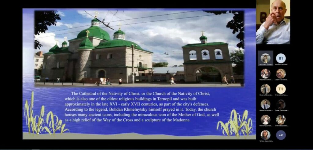 Саме за історію ТНМУ ім.І.Я.Горбачевського та пам’ятки архітектури міста Тернополя  підготувала доповідь Оніщук Анастасія студентка 219 групи медичного факультету. Студентка зазначила, що Тернопіль здавна був релігійним центром, оскільки тут проживали представники різних релігійних течій і народностей. Внаслідок цих обставин, у місті збереглися старовинні релігійні архітектурні споруди: Архикатедральний собор Непорочного Зачаття Пресвятої Богородиці, який збудований у II половині XVIII століття;  Кафедральний собор Різдва Христового, або Церква Різдва Христового, де знаходяться багато старовинних ікон, зокрема, чудотворна ікона Божої Матері, а також горельєф хресної дороги та скульптура Мадонни; Тернопільський академічний обласний український драматичний театр імені Тараса Шевченка — культурно-мистецький заклад у місті Тернопіль.
