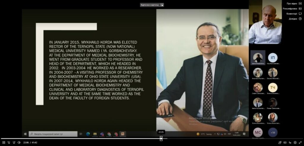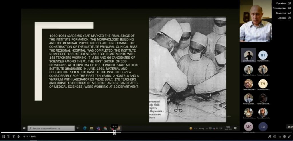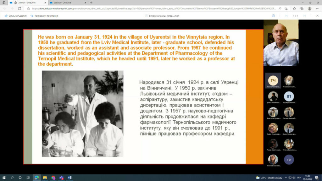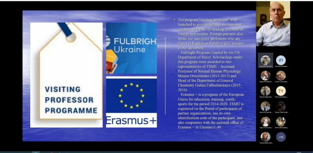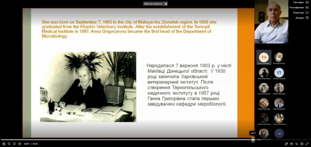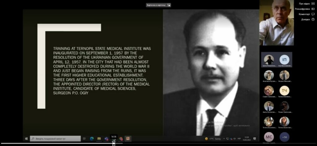 Співробітники кафедри фізіології з основами біоетики та біобезпеки дистанційно з нагоди шістдесят п’ятої річниці з дня заснування Тернопільського національного медичного університету імені І.Горбачевського провели виховний захід із іноземними студентами та студентами медичного факультету кураторських груп.