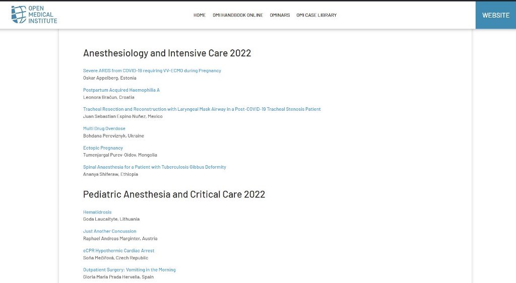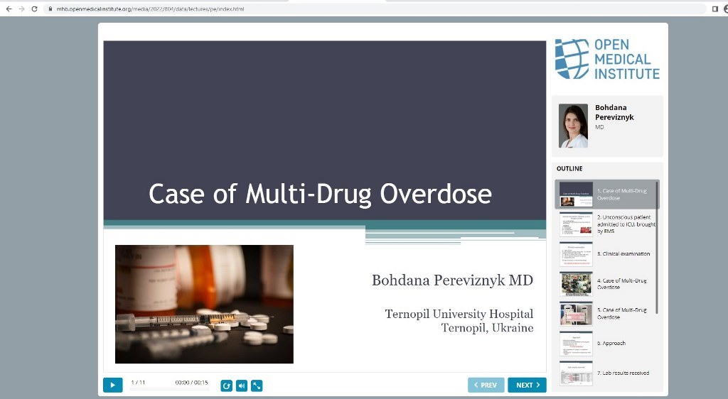 Додатково під час семінару був проведений воркшоп, де кожен з 32 учасників презентував клінічний випадок з власної практики. 6 найкращих доповідей професорсько-викладацький склад курсу відібрав як найкращі кейси. Представлена презентація клінічного випадку Богдани Перевізник на тему «Multi Drug Overdose» потрапила до списку шести кращих доповідей, записана в бібліотеку OMI Case Library та окремо відмічена додатковою відзнакою.