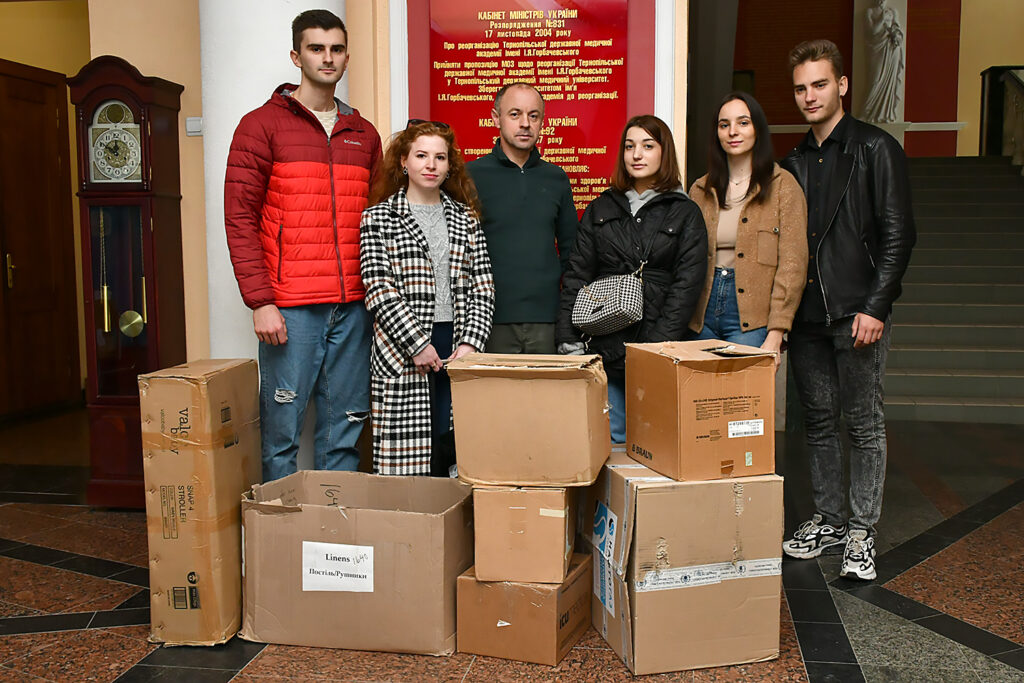 Гуманітарний вантаж до ТНМУ привезли Оксана Гевко, Тарас Шевчук і Тарас Кадобний.