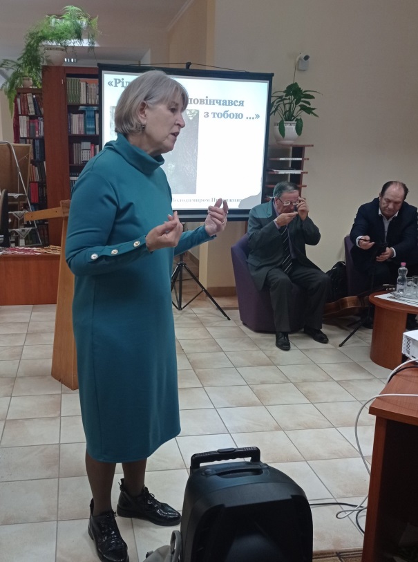 Провідний бібліотекар читального залу Світлана Шпунар представила присутнім гостя та коротко розповіла про його життєвих та творчий шлях.